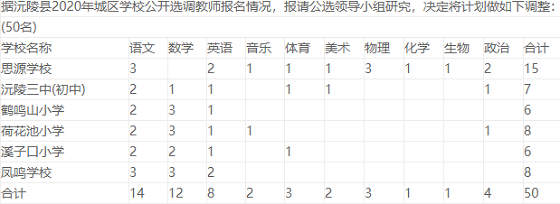 2020年懷化教師招聘 湖南懷化沅陵縣城區(qū)學校公開選調(diào)教師調(diào)整崗位計劃表