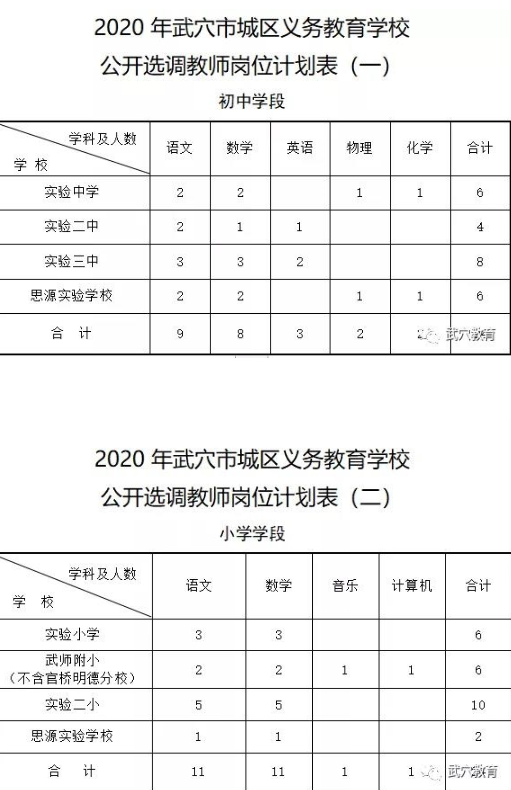 附件:2020年武穴市城區(qū)義務(wù)教育學(xué)校公開(kāi)選調(diào)教師崗位計(jì)劃表