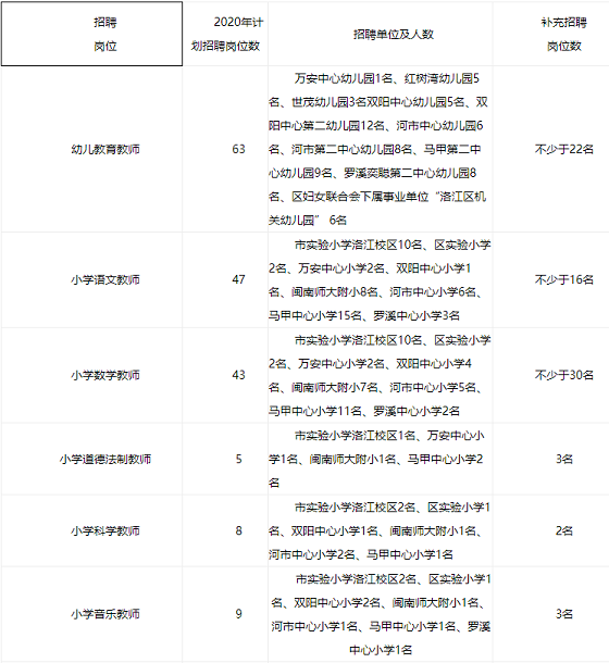 2020年泉州教師招聘 福建泉州市洛江區(qū)公辦學(xué)校補(bǔ)充招聘合同制教師公告(二)