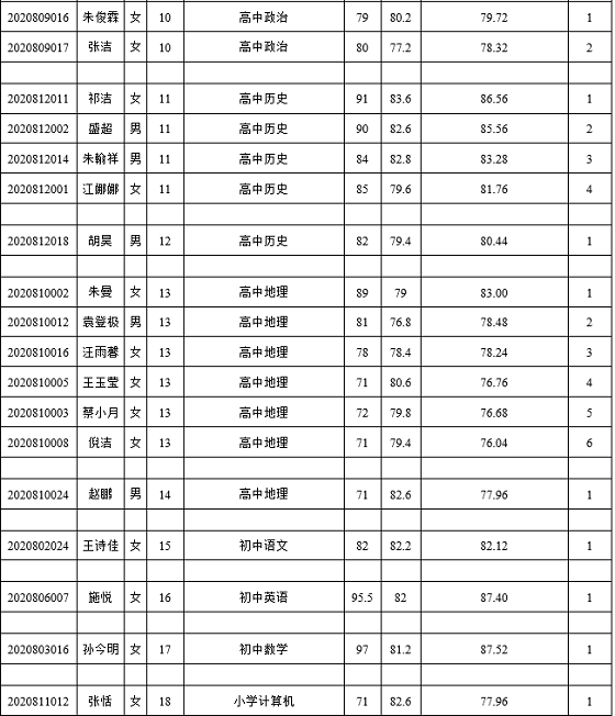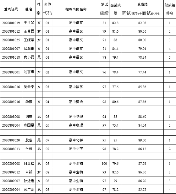 根據(jù)《建湖縣部分中小學(xué)2020年第二次公開招聘教師公告》和《關(guān)于調(diào)整建湖縣中小學(xué)2020年第二次公開招聘教師部分崗位招聘計(jì)劃的公告》精神,現(xiàn)將擬進(jìn)入體檢、考察程序人員名單予以公布: