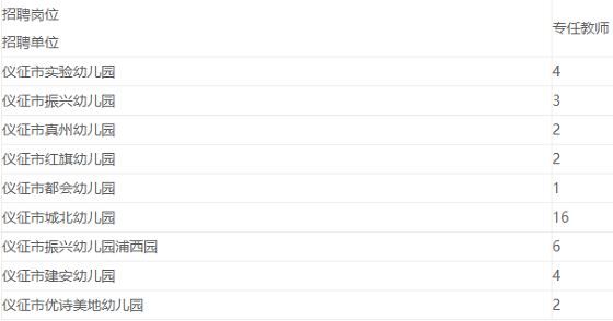 儀征市教育局所屬公辦幼兒園招聘聘用制教師40名,具體崗位見下表: