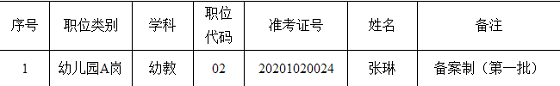 根據(jù)《2020年張家港市公開(kāi)招聘幼兒園備案制教師簡(jiǎn)章》“擬錄用人員主動(dòng)放棄錄用資格的,在報(bào)考同一職位的人員中,按考試成績(jī)總分從高分到低分依次遞補(bǔ)。”的相關(guān)規(guī)定,現(xiàn)將遞補(bǔ)進(jìn)入體檢人員名單公告如下: