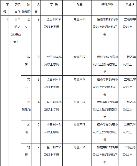 中學(xué)崗位(含職業(yè)中專):參加相應(yīng)學(xué)科2020年福建省新任教師公開招聘筆試,筆試原始成績(jī)達(dá)60分(150分制)及以上,年齡35周歲及以下(即1984年3月17日及以后出生)的應(yīng)、往屆全日制高校畢業(yè)生。