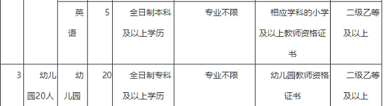 幼兒園崗位:參加幼教學(xué)科2020年福建省新任教師公開招聘筆試,筆試原始成績(jī)達(dá)60分(150分制)及以上,年齡35周歲及以下(即1984年3月17日及以后出生)的應(yīng)、往屆全日制高校畢業(yè)生。