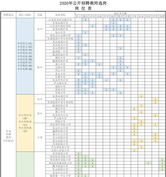 2020年蘇州教師招聘 蘇州吳中區(qū)公開招聘教師選崗崗位表(三)