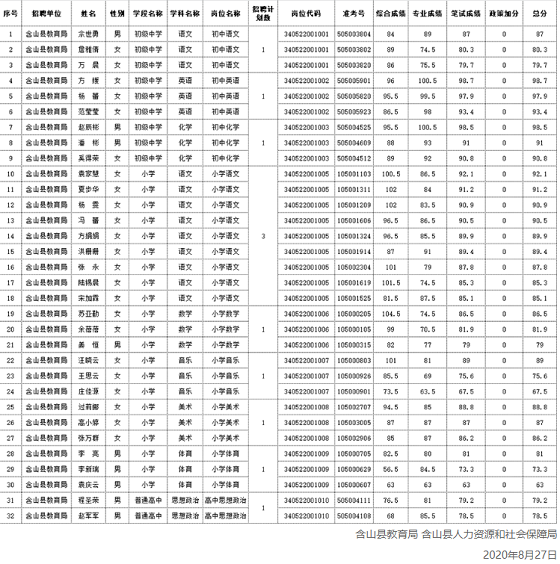 附件:2020年含山縣中小學(xué)新任教師公開招聘擬入圍專業(yè)測試人員資格復(fù)審名單