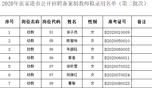 附件:2020年張家港市公開(kāi)招聘?jìng)浒钢平處煍M錄用名單(第二批次)