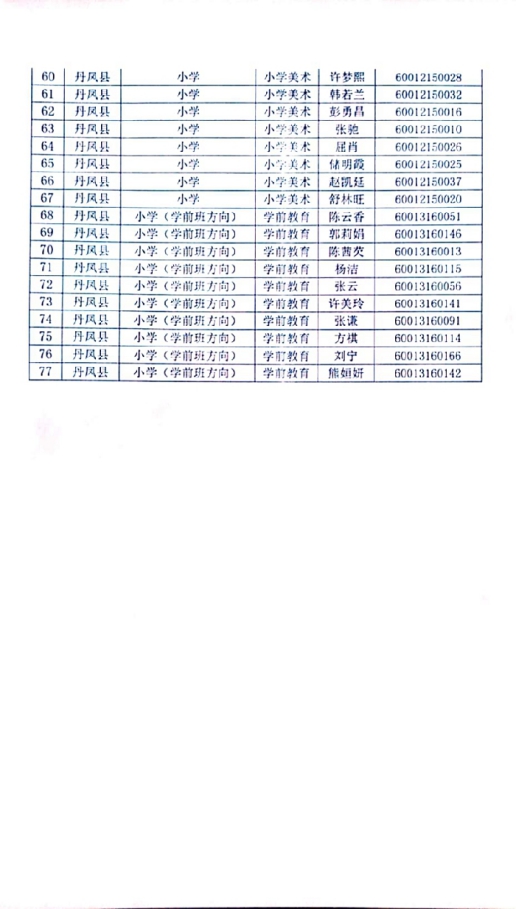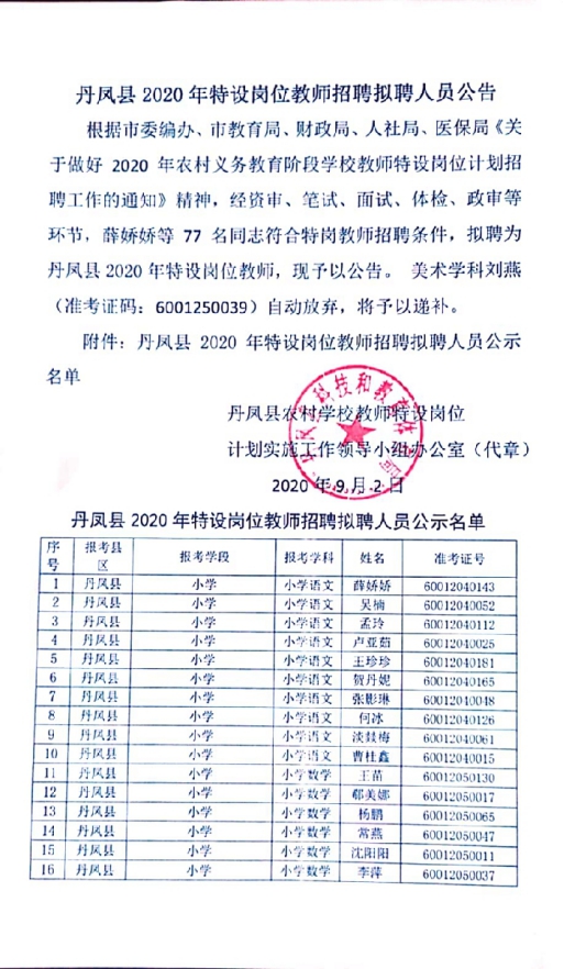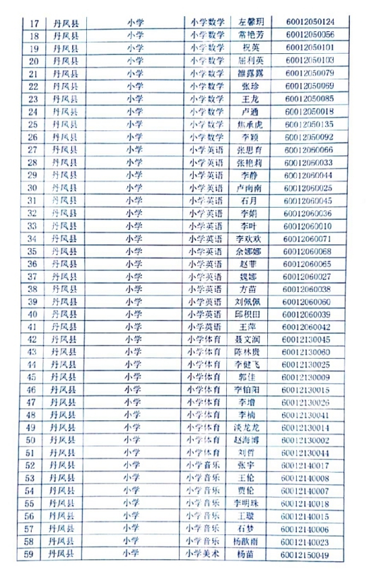 陜西商洛市丹鳳縣2020年特崗教師招聘擬聘人員公告
