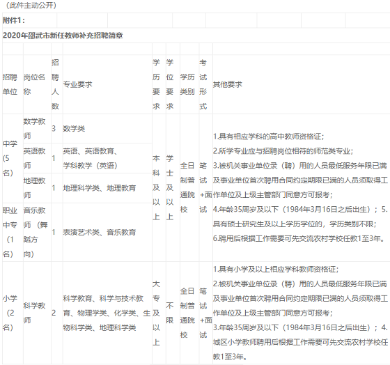 附件:2020年邵武市新任教師補(bǔ)充招聘簡章