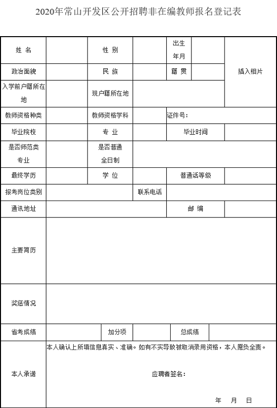 附件:《2020年常山開發(fā)區(qū)公開招聘非在編教師報(bào)名登記表》