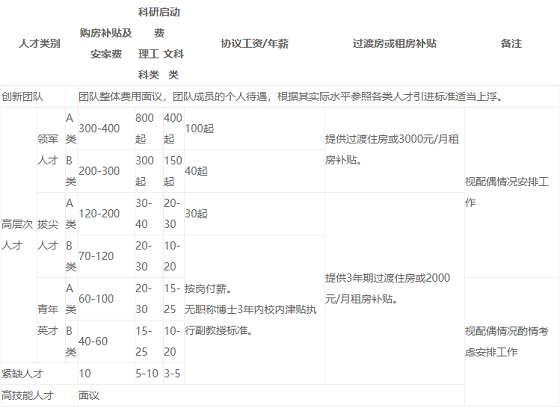 全職引進(jìn)人才,入采取入省事業(yè)編制,編引進(jìn)的人才給予以下待遇(單位:萬元)
