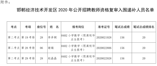 河北邯鄲經(jīng)濟(jì)技術(shù)開發(fā)區(qū)2020年公開招聘教師資格復(fù)審入圍人選遞補(bǔ)的通知