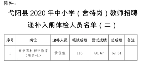 附件:弋陽(yáng)縣2020年中小學(xué)(含特崗)教師招聘遞補(bǔ)入闈體檢人員名單(二)