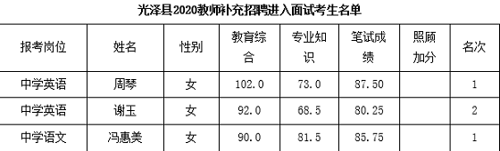 附件:光澤縣2020年教師補充招聘進入面試考生名單