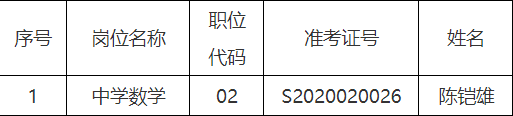 根據(jù)《張家港市2020年教育系統(tǒng)事業(yè)單位第二批公開招聘教師公告》“因考生體檢、政審不合格以及因自動放棄錄取資格而出現(xiàn)缺額時,按該崗位報考人員考試總成績從高分到低分進行一次性遞補”的相關(guān)規(guī)定,現(xiàn)將遞補進入體檢人員名單公告如下: