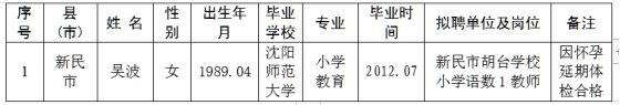 遼寧沈陽市2019年農(nóng)村義務(wù)教育階段學(xué)校特崗教師計(jì)劃擬聘用人員公示(第二批)