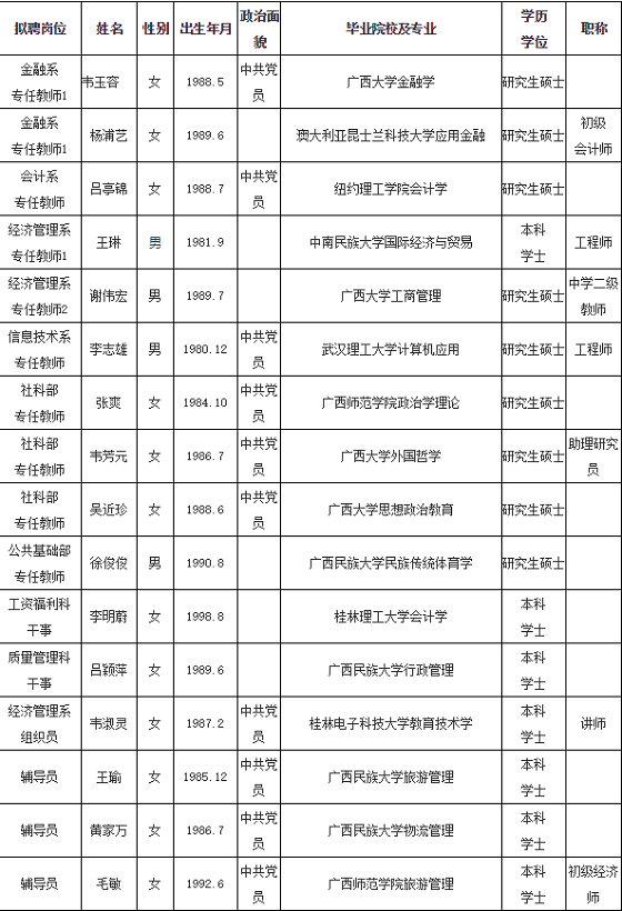 2020年南寧教師招聘 廣西金融職業(yè)技術(shù)學(xué)院第一批公開招聘非實(shí)名人員控制數(shù)工作人員擬聘用人員名單公示