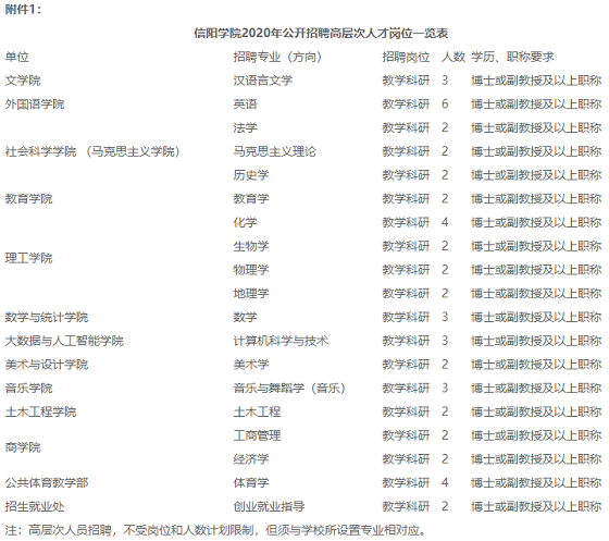 附件:1.信陽(yáng)學(xué)院2020年公開(kāi)招聘高層次人才崗位一覽表