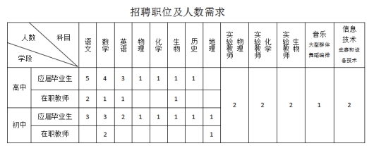 為進(jìn)一步提高教育教學(xué)質(zhì)量,確保我校教育事業(yè)穩(wěn)步發(fā)展,全面提高教師隊(duì)伍素質(zhì),經(jīng)董事會(huì)同意,特面向社會(huì)招聘中學(xué)教師,F(xiàn)將有關(guān)事項(xiàng)公告如下: