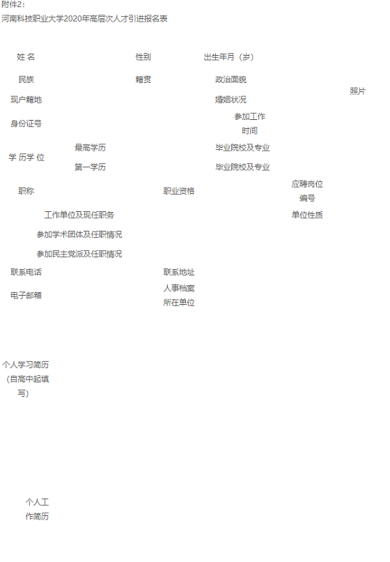 附件2河南科技職業(yè)大學(xué)2020年高層次人才引進(jìn)報(bào)名表