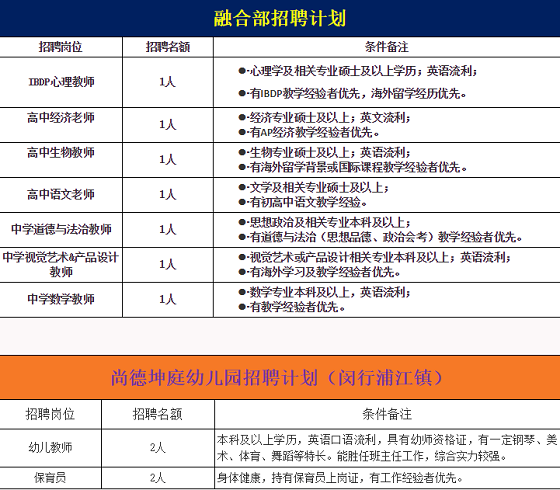 2020—2021學(xué)年上海教師招聘 上海市民辦尚德實(shí)驗(yàn)學(xué)校教師招聘公告