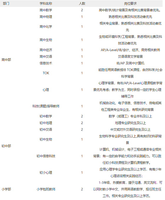 崗位2:上海中學(xué)國際部全英文教學(xué)的學(xué)科教師