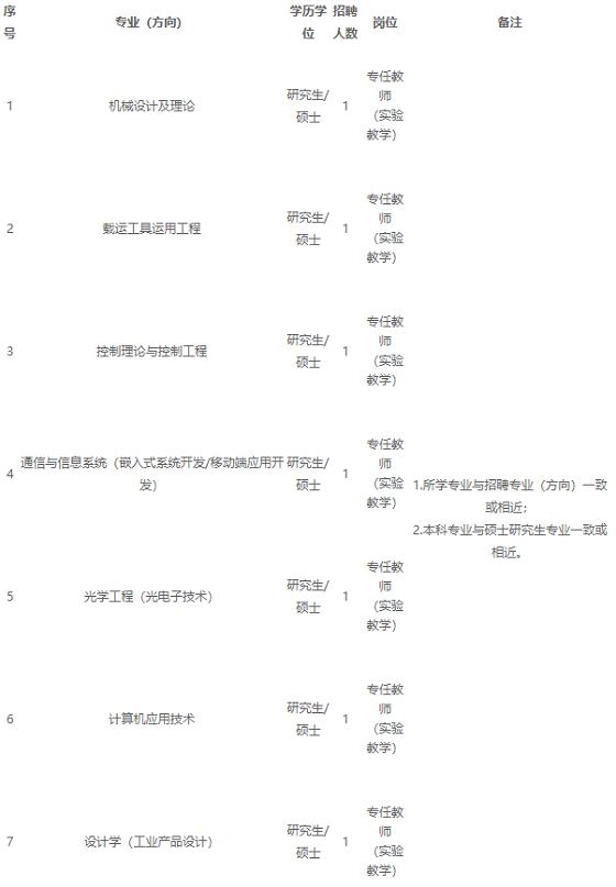 河南工學院2020年公開招聘工作人員(碩士)一覽表