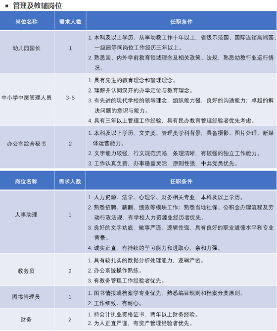 ★具有名校教育教學(xué)管理工作經(jīng)驗(yàn)者、能使用雙語(yǔ)教學(xué)者、主持課題研究或有教科研文章發(fā)表者、省、市、區(qū)(縣)級(jí)以上的學(xué)科帶頭人、市青優(yōu)、優(yōu)課獲獎(jiǎng)?wù)呋騼?yōu)秀班主任等優(yōu)先且適當(dāng)放寬條件。