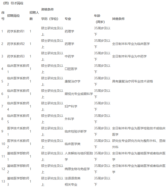 江西醫(yī)學(xué)高等?茖W(xué)校是一所由江西省和上饒市人民政府共同舉辦的公辦?茖哟纹胀ǜ叩仍盒#逃俊白吭结t(yī)生教育培養(yǎng)計劃”試點高校。為進(jìn)一步加強(qiáng)我校師資隊伍和附屬醫(yī)院建設(shè),經(jīng)研究,決定面向社會公開招聘29名優(yōu)秀人才充實教師隊伍和醫(yī)療隊伍,F(xiàn)將有關(guān)事項公告如下: