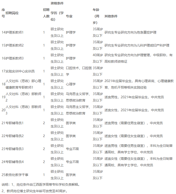 2020年江西省上饒市江西醫(yī)學(xué)高等?茖W(xué)校第一批市外引才教師招聘【29人】