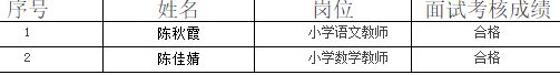 根據(jù)《思明區(qū)教育系統(tǒng)非在編聘用人員公開招聘實施細則(廈思教〔2014〕95號)》及《廈門市前埔北區(qū)小學公開招聘非在編人員招聘簡章》要求,現(xiàn)將擬聘用人員的面試考核結果公示如下: