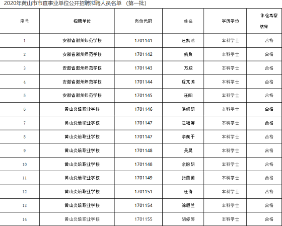 附:2020年黃山市市直事業(yè)單位公開(kāi)招聘擬聘人員名單(第一批)