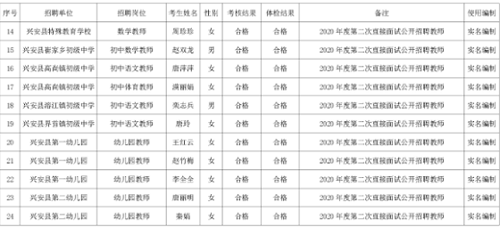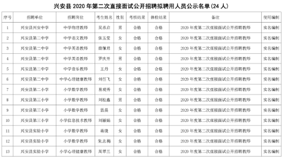 2020廣西桂林市興安縣第二次直接面試公開招聘教師擬聘用人員公示