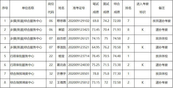 根據(jù)《2020年泗陽縣第二批事業(yè)單位公開招聘工作人員簡章》規(guī)定,現(xiàn)將遞補考察名單予以公告(見附表)。請遞補進入考察環(huán)節(jié)人員保持通訊暢通,便于考察組聯(lián)系,根據(jù)考察組有關要求做好準備工作,同時配合做好疫情防控相關工作。