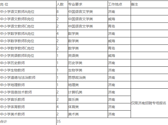 備注:A、B、C三類崗位分別面向濟(jì)南、威海、青島定向招聘,入職后工作地點(diǎn)將位于上述三個城市,但人事關(guān)系均屬于山東大學(xué)。