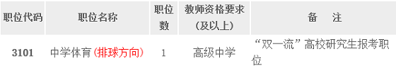 注:如報(bào)名人數(shù)超過40人時(shí),將在考核前設(shè)置筆試環(huán)節(jié),筆試內(nèi)容為中學(xué)體育專業(yè)知識(shí),時(shí)長60分鐘,滿分100分。筆試后,以人才引進(jìn)崗位數(shù)為基數(shù),依筆試成績得分從高到低按1:20的比例確定入圍考核的人選。筆試成績不計(jì)入考核成績。相關(guān)具體安排于報(bào)名結(jié)束后在學(xué)校官網(wǎng)公布。
