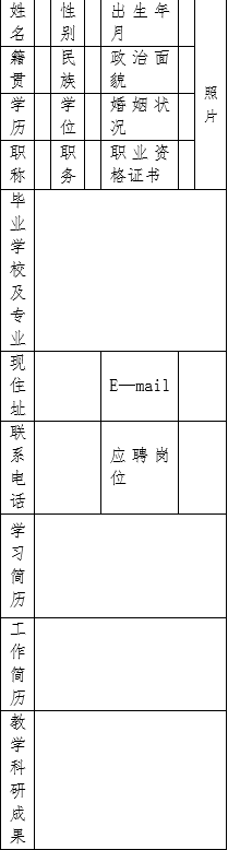 附表:瓊臺師范學(xué)院應(yīng)聘人員登記表