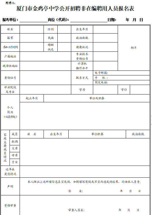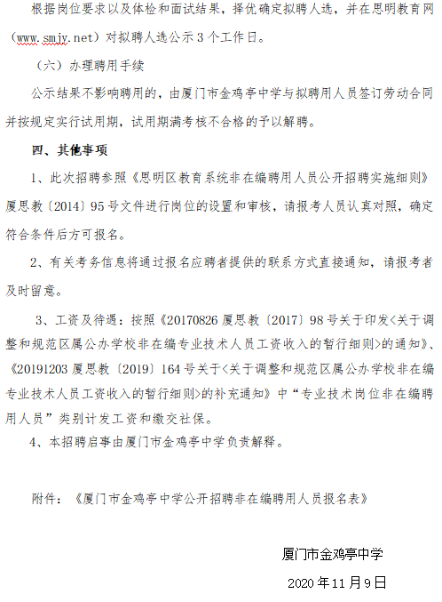 2020—2021學(xué)年廈門市金雞亭中學(xué)非在編合同教師(體育教師1人)招聘簡章