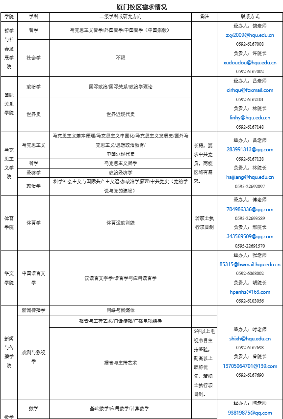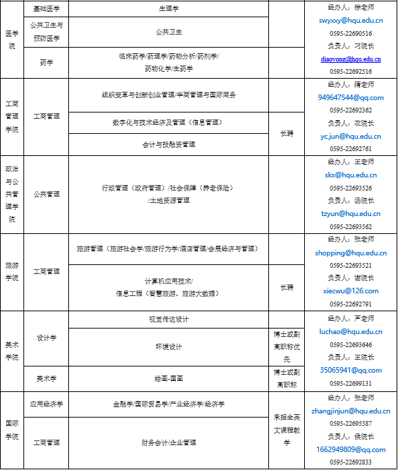 人才招聘系統(tǒng)網(wǎng)址:http://zhaopin.hqu.edu.cn(用于登記求職信息、提交應聘簡歷、申請崗位)