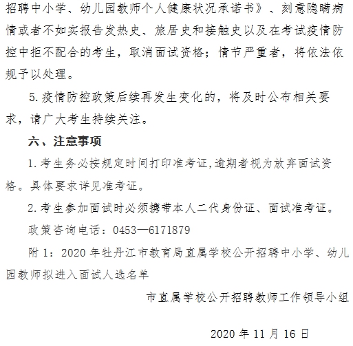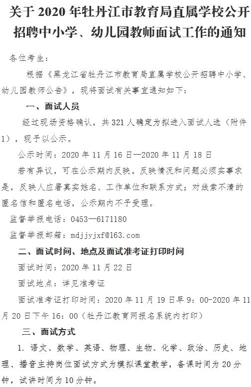 2020年黑龍江牡丹江市教育局直屬學(xué)校公開招聘中小學(xué)、幼兒園教師面試工作通知