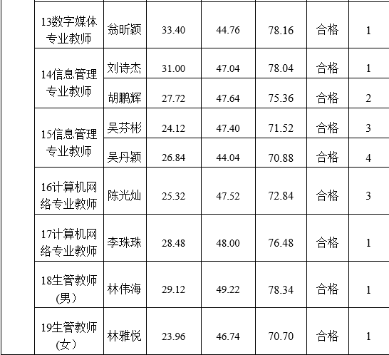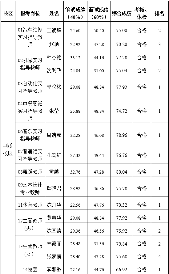 (說明:荊溪校區(qū)01崗位第1名放棄,順延遞補第3名;05崗位第1名放棄,無可遞補人選;10崗位前3名均放棄,無可遞補人選;13崗位第1名、第3名放棄,順延遞補第4名。南嶼校區(qū)08、12崗位第1名放棄,順延遞補第3名;15崗位第1名、第2名放棄,順延遞補第3名、第4名;16崗位第1名、第2名放棄,順延遞補第3名)
