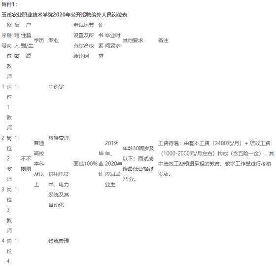 詳見附件:《玉溪農(nóng)業(yè)職業(yè)技術(shù)學(xué)院2020年公開招聘編外人員崗位表》