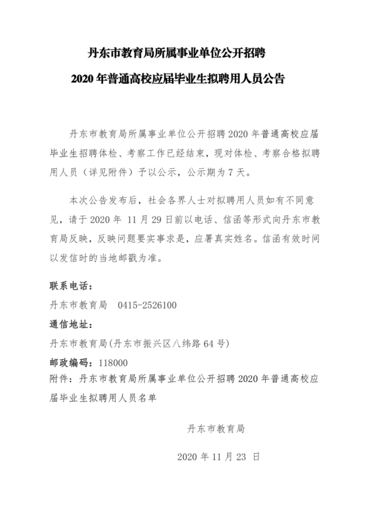 附件(1個(gè))丹東市教育局所屬事業(yè)單位公開招聘2020年普通高校應(yīng)屆畢業(yè)生擬聘用人員名單.xlsx