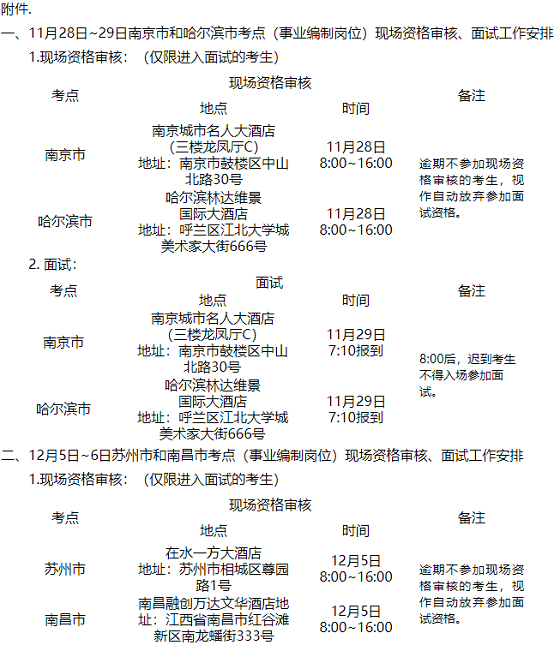 現(xiàn)場資格審核通過后,在面試準(zhǔn)考證上蓋章確認(rèn),并按照相關(guān)程序組織面試。各考點(diǎn)現(xiàn)場資格審核、面試的具體時(shí)間和地點(diǎn)見附件(同面試準(zhǔn)考證)。請隨時(shí)關(guān)注系統(tǒng)信息發(fā)布。
