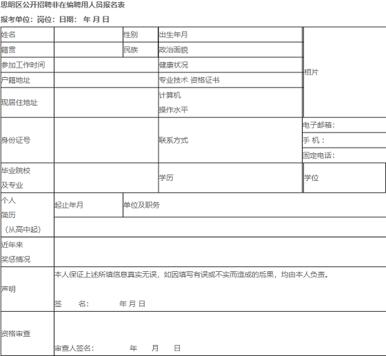 《思明區(qū)公開招聘非在編聘用人員報(bào)名表》(見附件)、個(gè)人簡歷(原件);身份證、戶口本、教師資格證、畢業(yè)證書、學(xué)位證書、獲獎(jiǎng)證書等的電子版(含證書的掃描版)壓縮打包發(fā)至郵箱xmdtzxjwc@163.com,文件名統(tǒng)一命名為姓名+(學(xué)科),如張三(地理)。