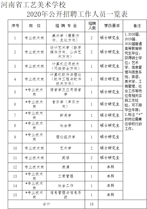附件:河南省工藝美術學校2020年公開招聘工作人員一覽表
