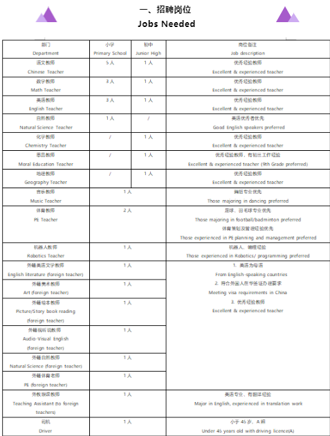 現(xiàn)因?qū)W校工作需要,招聘教師工作人員,具體情況如下: