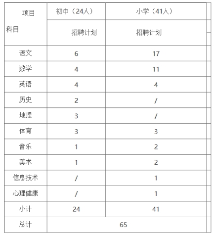 我街道現(xiàn)有公辦中小學(xué)14所,其中初中2所,小學(xué)12所。現(xiàn)向全國招聘街道聘任各學(xué)科優(yōu)秀教師65人,其中初中24人,小學(xué)41人。