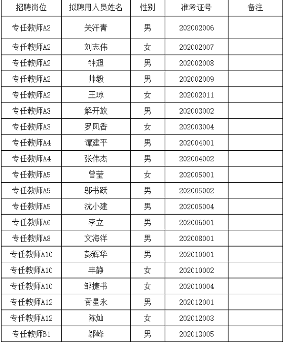 根據(jù)《湖南工程學(xué)院2020年第二批專任教師公開招聘公告》及有關(guān)規(guī)定,經(jīng)報名、資格審查、直接考核、體檢、考察等程序,經(jīng)湖南工程學(xué)院校長辦公會、黨委會研究決定,確定關(guān)汗青等20名同志為2020年湖南工程學(xué)院第二批專任教師公開招聘擬聘用人選,現(xiàn)予以公示。