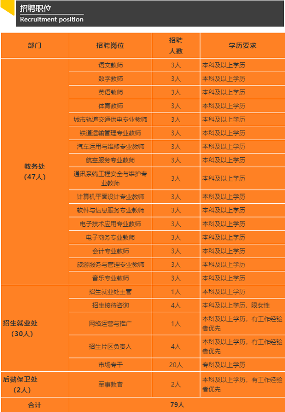 3、專(zhuān)任教師招聘要求全日制本科及以上學(xué)歷,碩士研究生及以上學(xué)歷、有教師資格證、相關(guān)專(zhuān)業(yè)職稱(chēng)、“雙師型”教師、有教學(xué)經(jīng)驗(yàn)、企業(yè)生產(chǎn)實(shí)踐經(jīng)驗(yàn)者優(yōu)先。